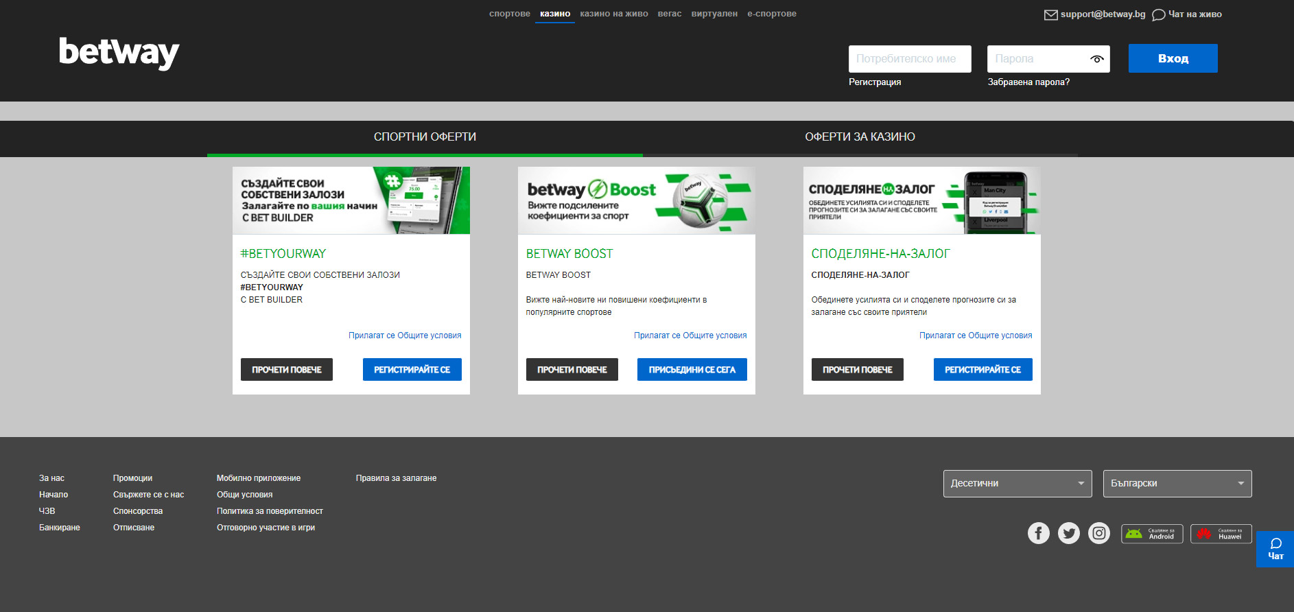 Betway казино бонуси
